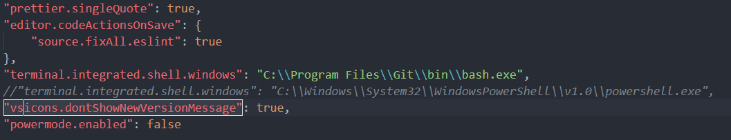 사진과 같이 "terminal.integrated.shell.windows": "C:\\Program Files\\Git\\bin\\bash.exe" 를